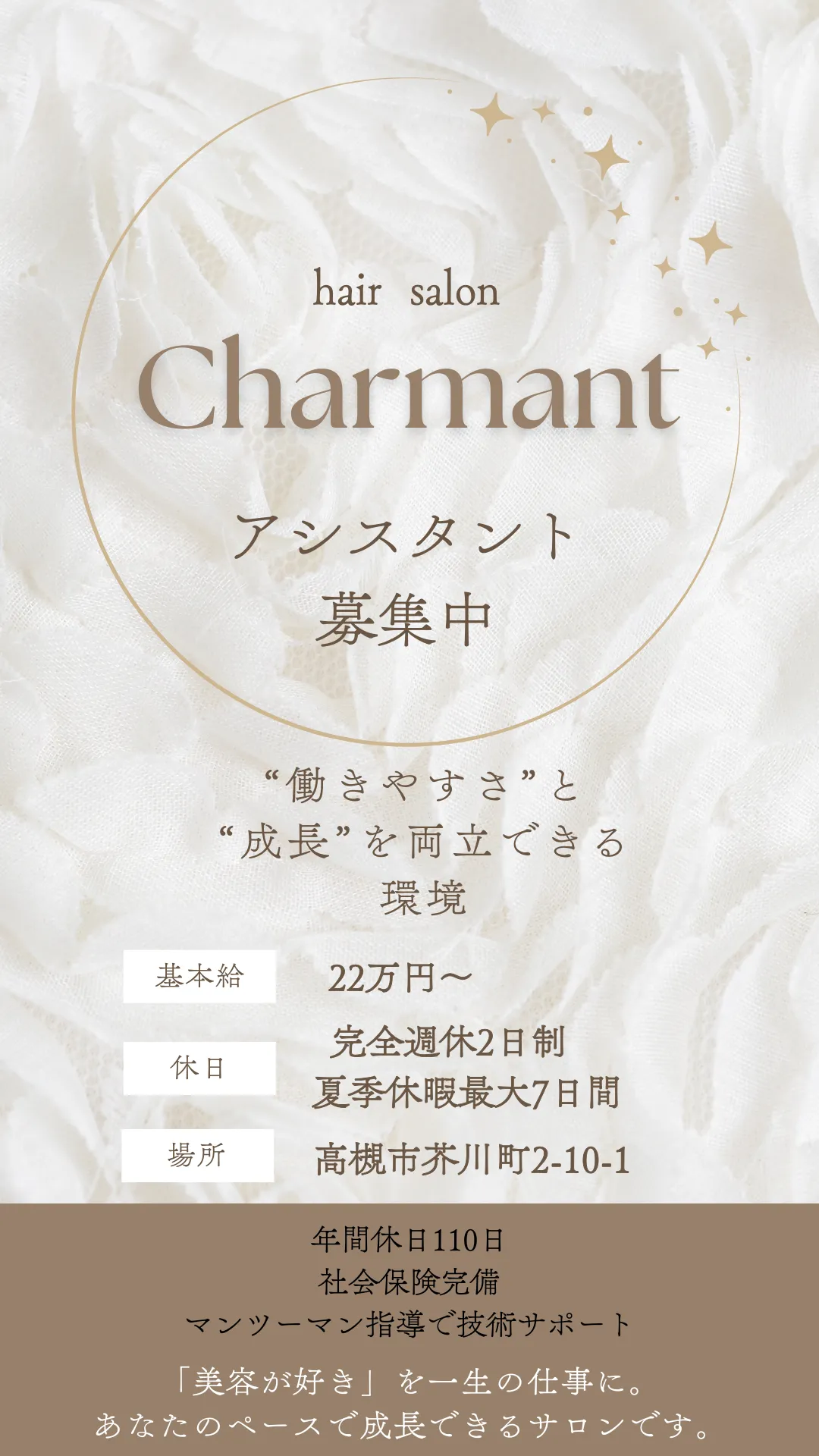 高槻市の美容室Charmantでアシスタントの求人募集しています!