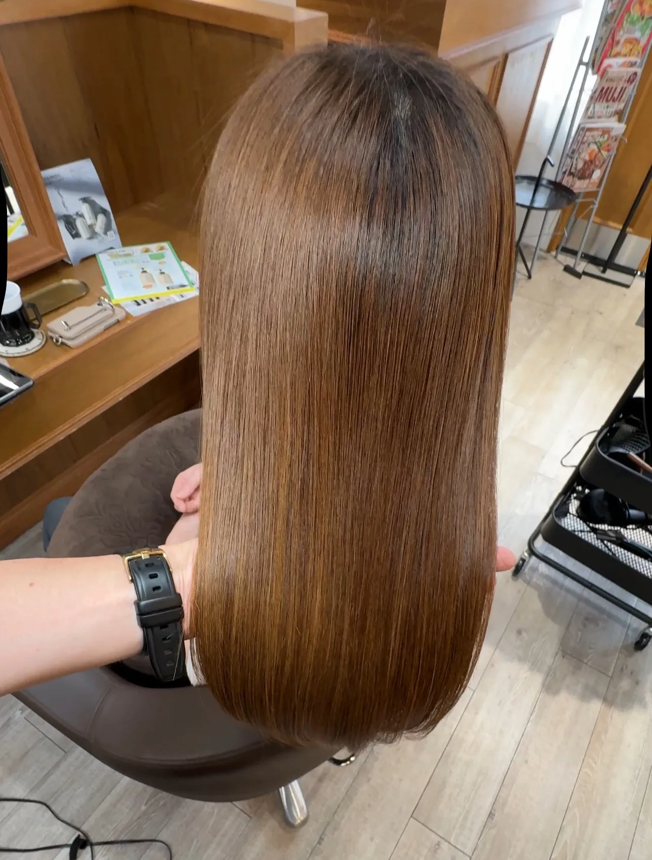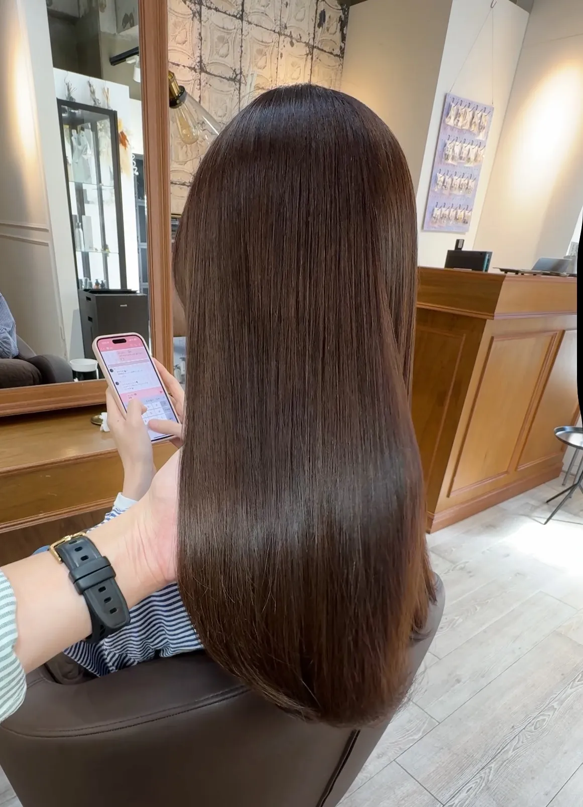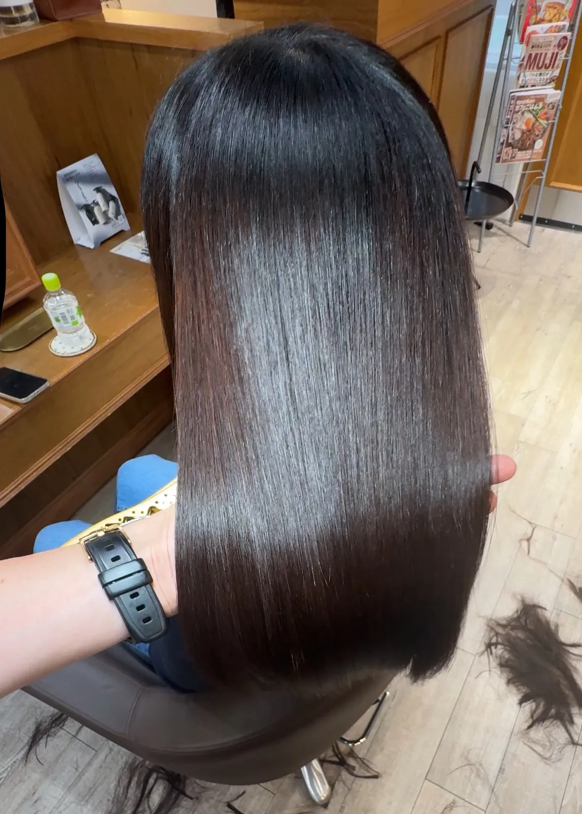 | トリートメント併用 | 縮毛矯正+集中トリートメント施術 | 保湿成分配合、ダメージ軽減重視 | 毛先までしっとりし、手触りが長持ち |