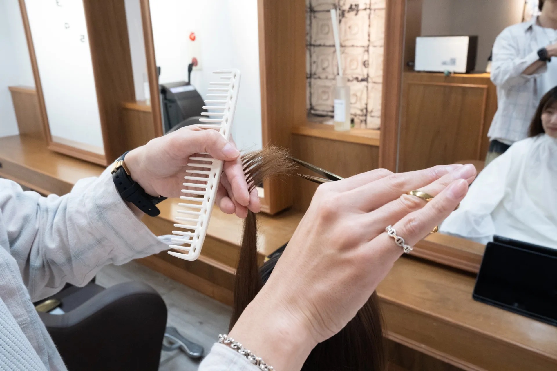 お客様一人ひとりの髪質や骨格を考慮しながら、日常で扱いやすいスタイルを追求するカットを高槻市でご提案しています。とくに顔周りの印象を大切にしており、おでこやフェイスラインに合わせてデザインを整えることで、自然に馴染む仕上がりを目指すカットが得意です。髪の流れを見極めながら行うカットにより、ご自宅でのセットも簡単にできるよう配慮し、朝の準備時間を短縮できるような再現性を意識しています。